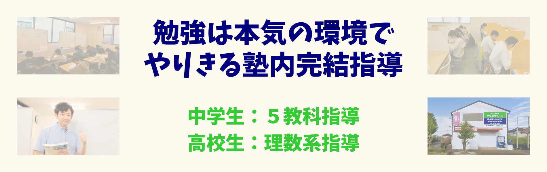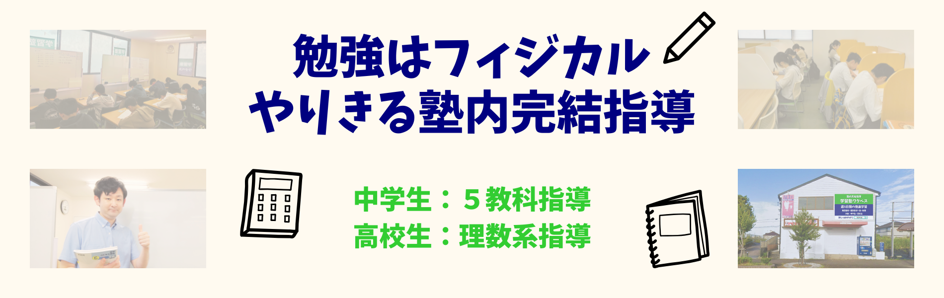 集団指導・個別指導・自立学習を組み合わせた指導を提供します。効率的な指導と面倒見の両立を実現します。